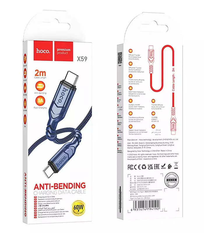 HOCO CABLE TYPE C TO TYPE C 8-PIN PD 60W X59 2m blue