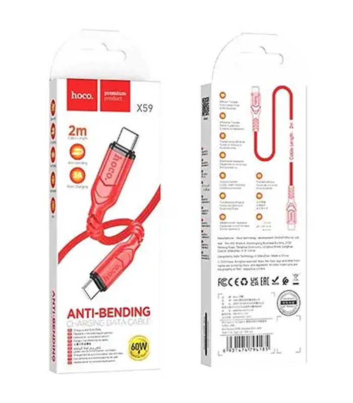 HOCO CABLE TYPE C TO TYPE C 8-PIN PD 60W X59 2m red