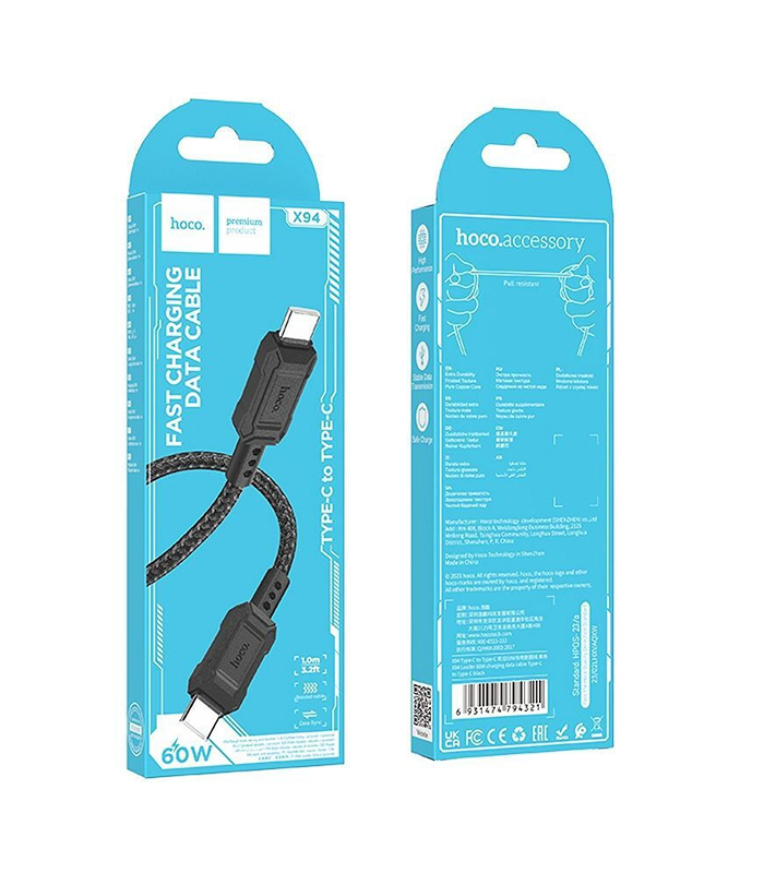 HOCO CABLE TYPE C TO TYPE C PD 60W X94 1m Black