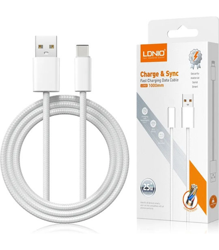 LDNIO CABLE USB TO C 25W FAST WHITE 2m