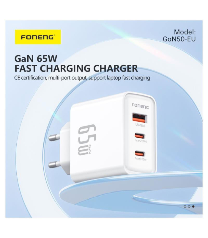 FONENG GaN TRAVEL CHARGER + TPC-TPC CABLE 65W white ΦΟΡΤΙΣΤΗΣ