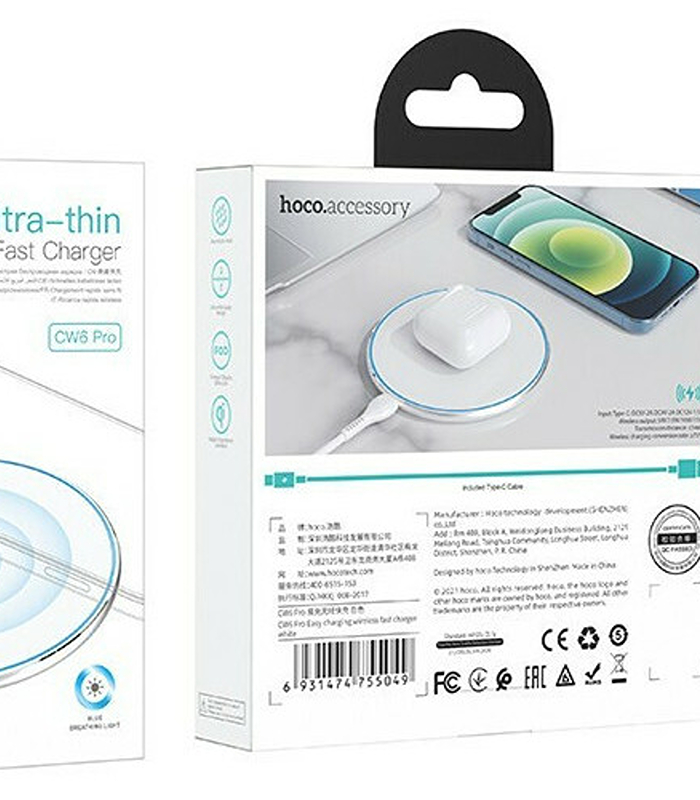 HOCO wireless charger with light 2A 15W CW6 Pro white
