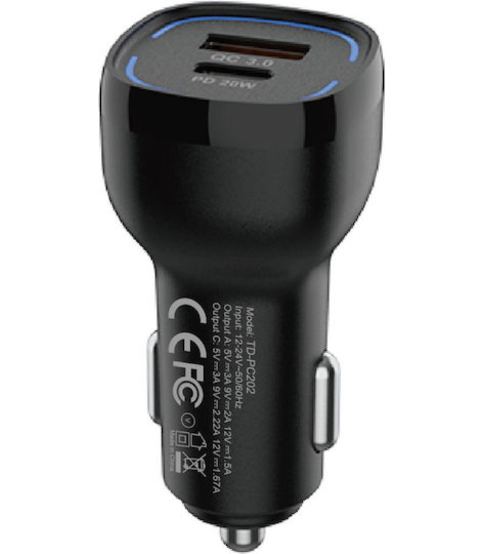 JES PC202 Φορτιστής Αυτοκινήτου 38W PD+QC Μαύρος (Αντιγραφή)