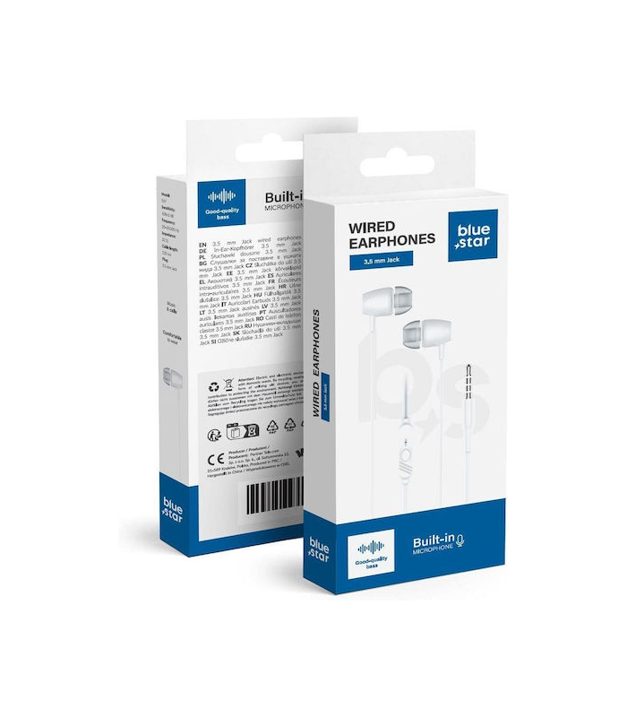 BLUE STAR wire earphones Jack 3,5 mm with microphone PA-E65 1,2 m white
