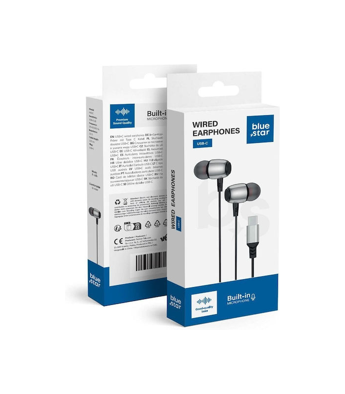 BLUE STAR wire earphones Type C (DAC) with microphone M09C 1,2 m black