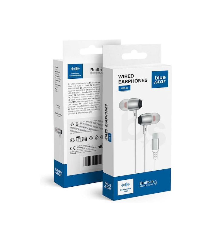 BLUE STAR wire earphones Type C (DAC) with microphone M09C 1,2 m white