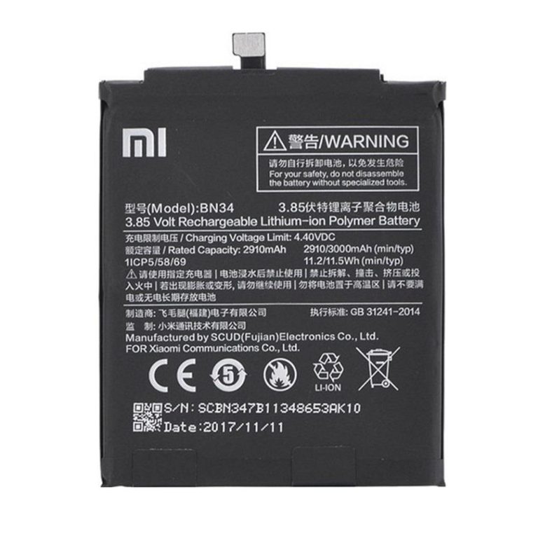 Xiaomi Redmi 5A – Original Battery BN34 3000 mAh Li-Ion Bulk