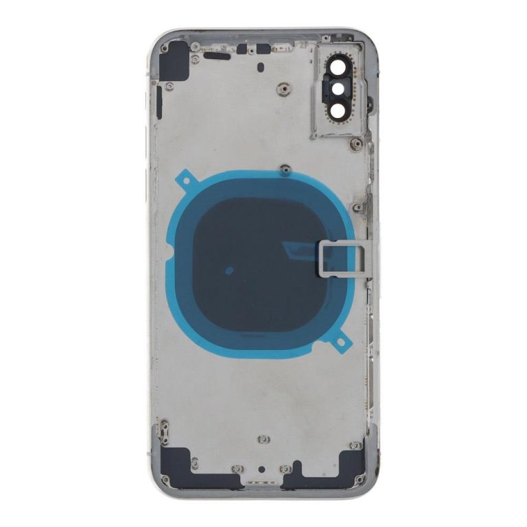 Apple iPhone X – Back battery door cover middle frame housing with small parts White HQ OEM with Logo