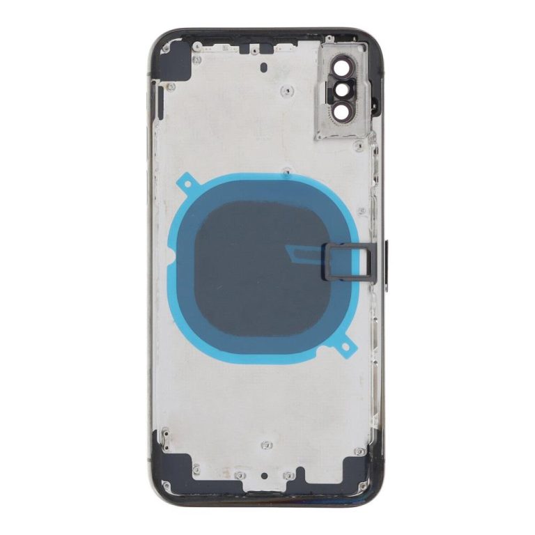 Apple iPhone X – Back battery door cover middle frame housing with small parts Black HQ OEM with Logo