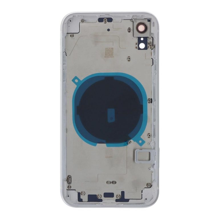 Apple iPhone XR – Back battery door cover middle frame housing with small parts White HQ OEM without Logo