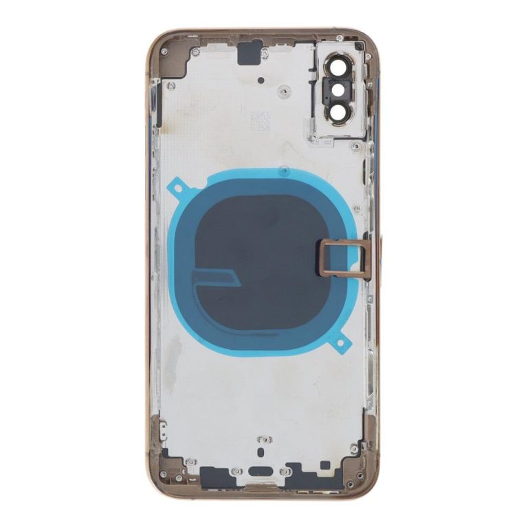 Apple iPhone XS – Back battery door cover middle frame housing with small parts Gold HQ OEM with Logo