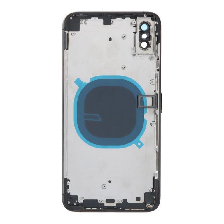 Apple iPhone XS Max – Back battery door cover middle frame housing with small parts Black HQ OEM with Logo