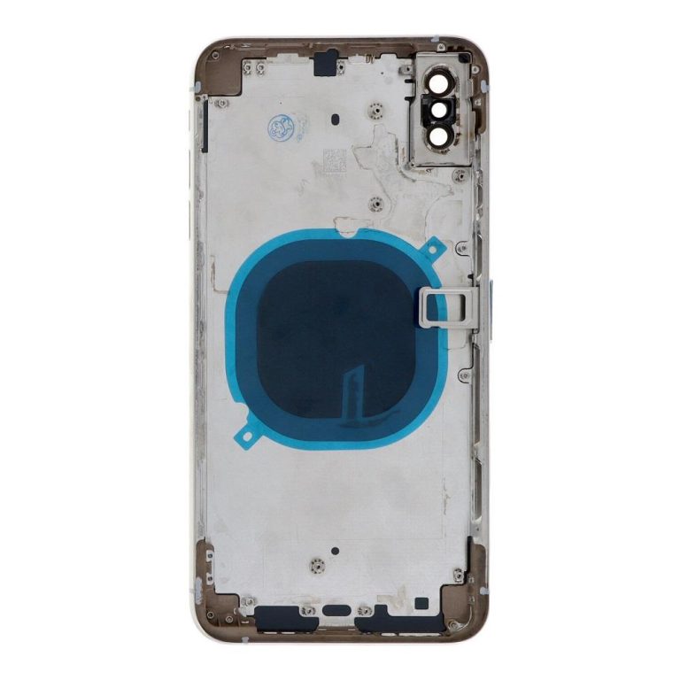 Apple iPhone XS – Back battery door cover middle frame housing with small parts White HQ OEM with Logo