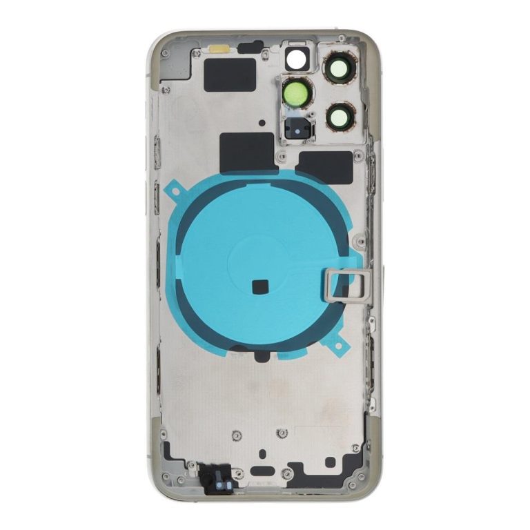 Apple iPhone 11 Pro – Back battery door cover middle frame housing with small parts White OEM with Logo