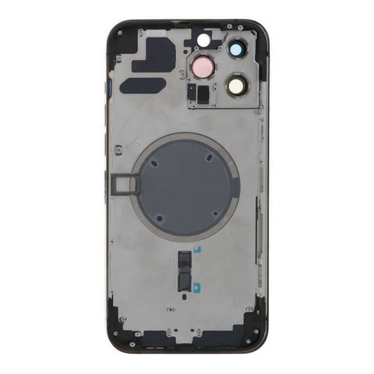 Apple iPhone 13 Pro Max – Back battery door cover middle frame housing with small parts Black OEM with Logo