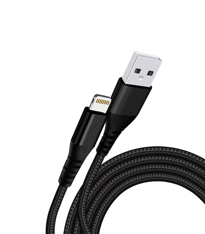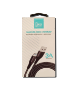 Καλώδιο φόρτισης από USB-A σε USB Lightning, πλεκτό ανθεκτικό ύφασμα, μήκος 1m, χρώμα μαύρο, 3Ampere.