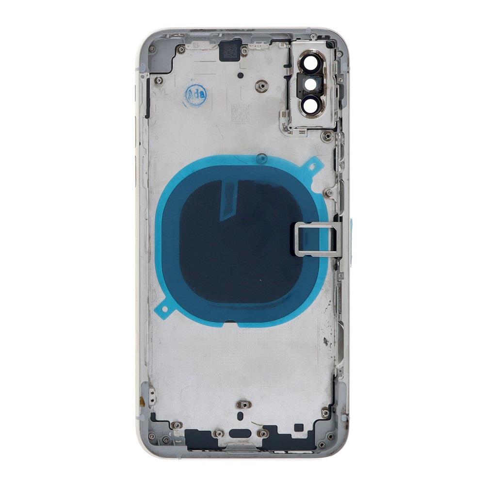 Apple iPhone XS – Back battery door cover middle frame housing with small parts White HQ OEM with Logo