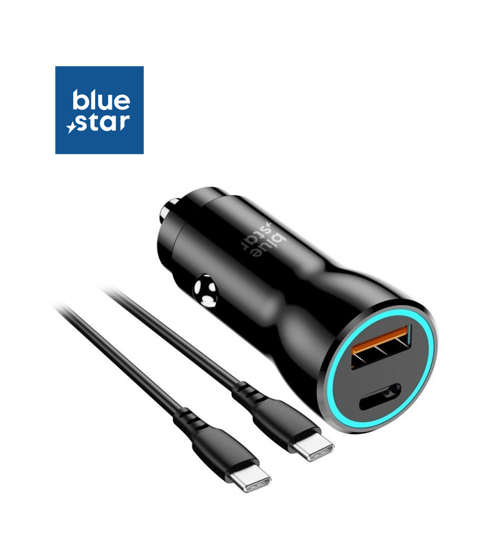 Φορτιστής αυτοκινήτου Blue Star με δύο θύρες: USB-C και USB-A.