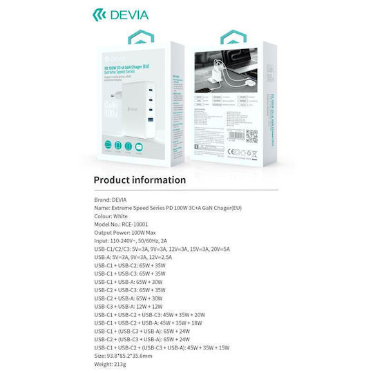 Devia Extreme Speed Series PD 100W 3C+A GaN Charger(EU)