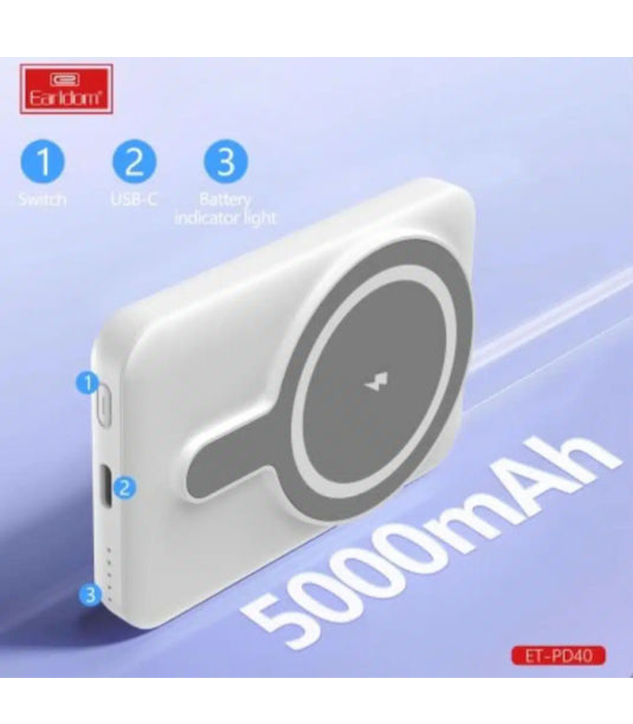 Με ενσωματωμένη δυνατότητα ασύρματης φόρτισης, το Earldom ET-PD40 σας επιτρέπει να φορτίζετε τις συσκευές σας χωρίς καλώδια. Απλώς τοποθετήστε τη συμβατή με Qi συσκευή σας πάνω στο power bank για μια άνετη και γρήγορη φόρτιση.