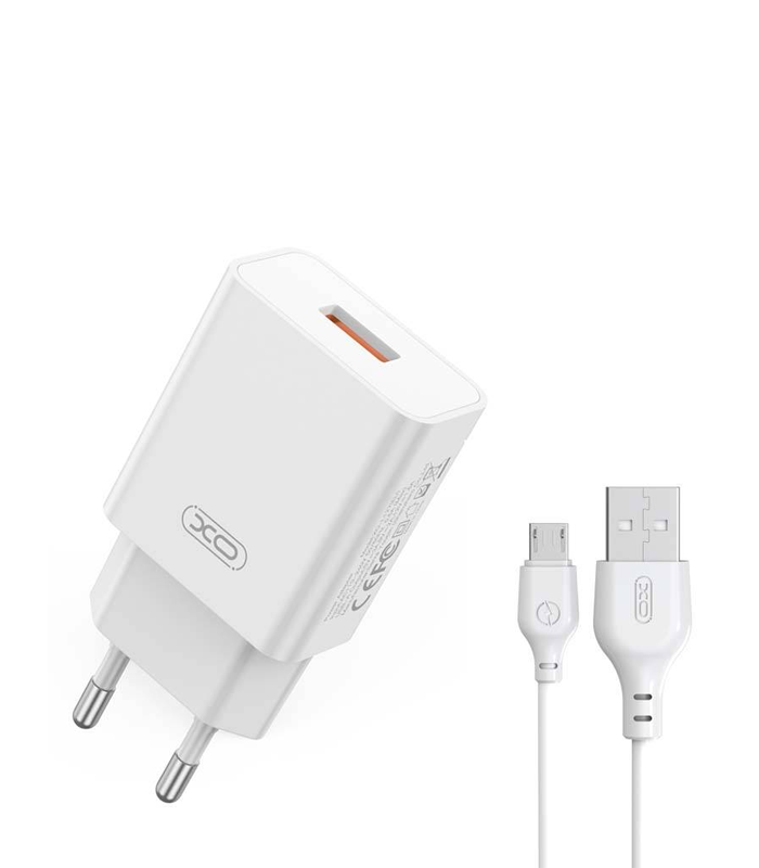 Φορτιστής Γρήγορης Φόρτισης με Καλώδιο USB-micro. Μέγιστη Ισχύς 18W , χρώμα Άσπρο.