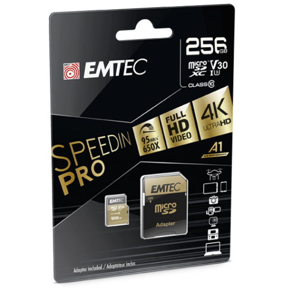 Memory Card microSD EMTEC USH-I U3 V30 SPEEDIN PRO A1 256GB CLASS 10