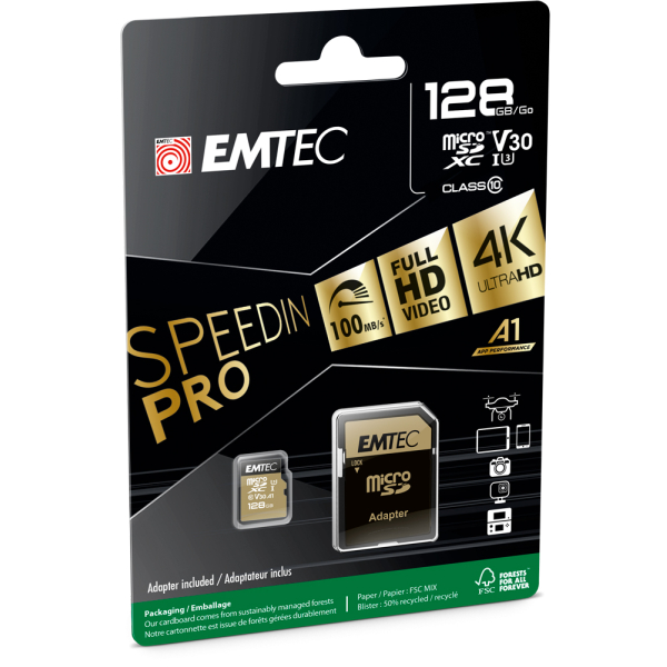 Memory Card microSD EMTEC USH-II V30 A2 SPEEDIN PRO PLUS 128GB CLASS 10