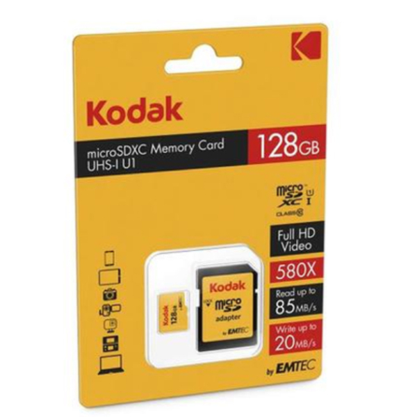 Memory Card microSD KODAK UHS-I U1 PREMIUM PERFORMANCE 128GB CLASS 10 with adapter V10 A1
