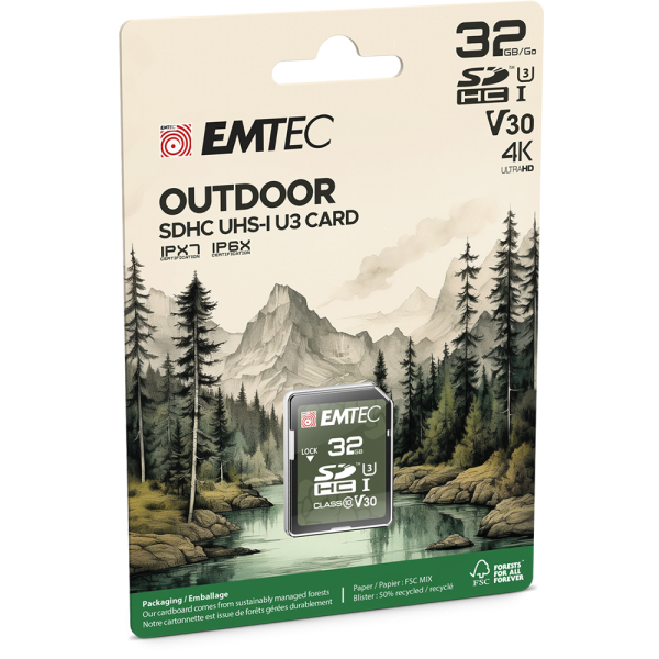 • Memory Card SD EMTEC UHS-I U1 V30 OUTDOOR 32GB CLASS