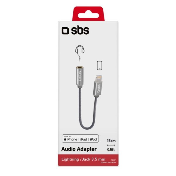 SBS AUDIO CABLE MFI LIGHTNING TO JACK 3.5 FEMALE 15cm silver