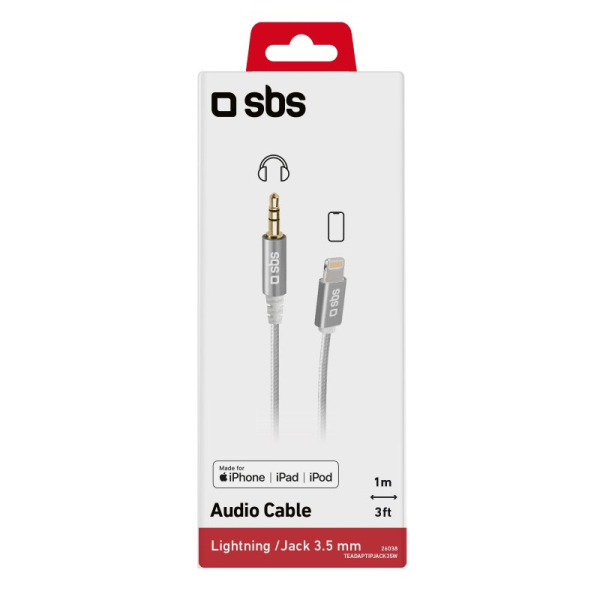 SBS MFI AUDIO CABLE LIGHTNING TO JACK 3.5 silver