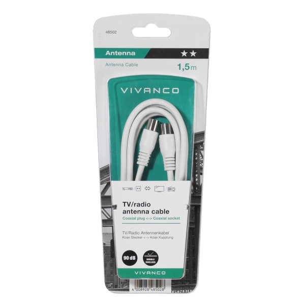 VIVANCO ANTENNA CABLE 1.5m COAX PLUG-COAX SOCKET 90 dB white
