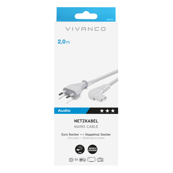 VIVANCO POWER SUPPLY CABLE 2PIN ANGLED CONNECTOR 2m