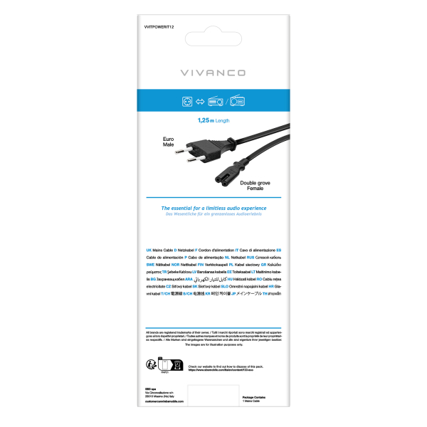 This Vivanco power cable with a Euro 8 plug and European plug allows you to