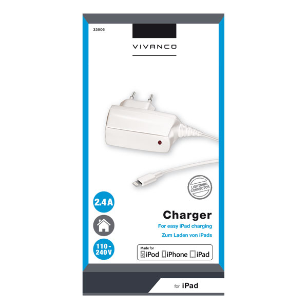 VIVANCO TRAVEL CHARGER MFI 2.4A LIGHTNING FIXED white